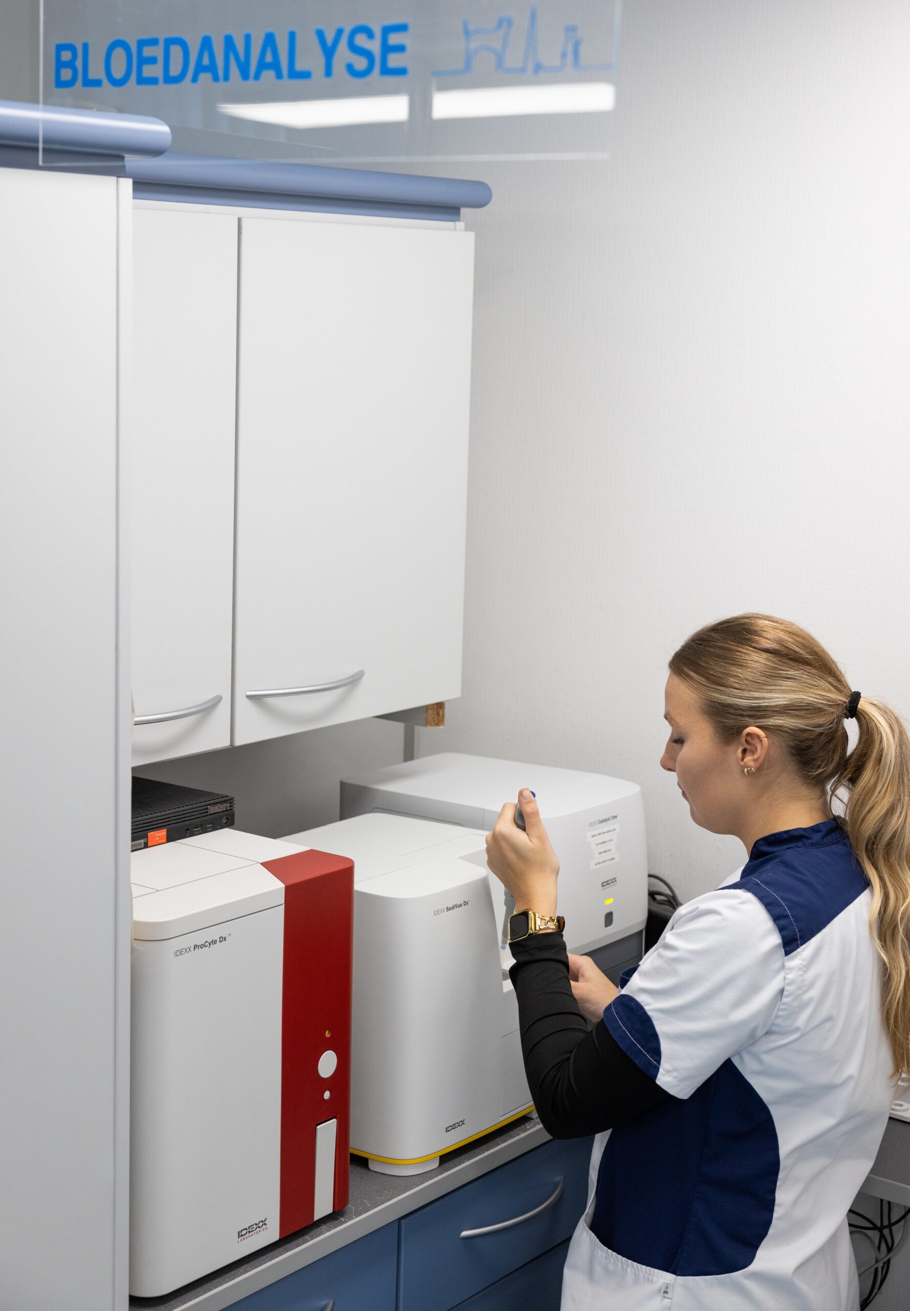 Met een bloedonderzoek kunnen we veel ziekten direct in de kliniek vaststellen. Er wordt voor het onderzoek wat bloed afgenomen uit de hals of de poot. Met behulp van de apparaten ‘Procyte, Catalyst en Snapshot DX’ wordt het bloed onderzocht. Met deze apparaten kunnen wij belangrijke informatie uit het bloed halen.